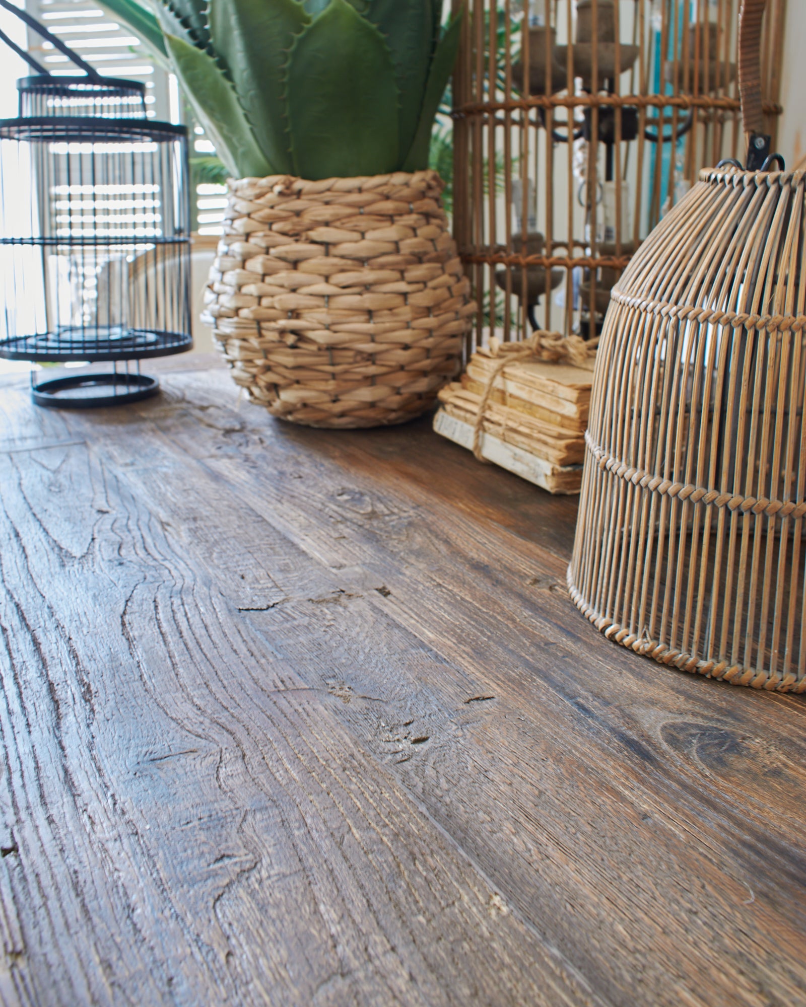 • Materialien: Wiederverwertetes Ulmenholz mit natürlicher Antik-Oberfläche und gebürsteter Oberfläche